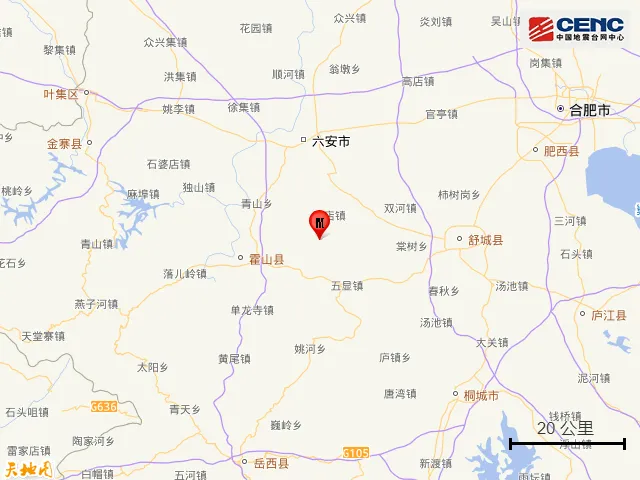 六安市晋安区发生3.4级地震